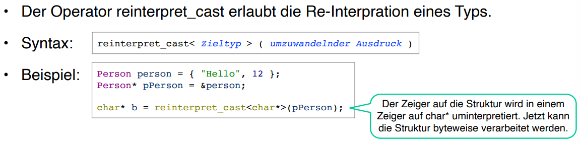 * Manche Compiler lassen Fehl-Casts „durchgehen“, was zu undefiniertem