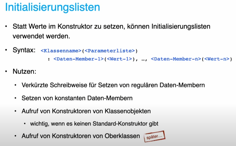 * Reservierung von Speicher wird an den Konstruktor eines Objekts gebunden.