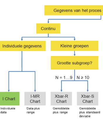 Welke 4 Control-charts (regelkaarten) zijn er voor continue data?