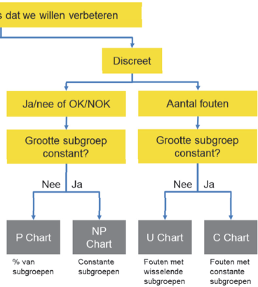 Welke 4 Control-charts (regelkaarten) zijn er voor discrete data?