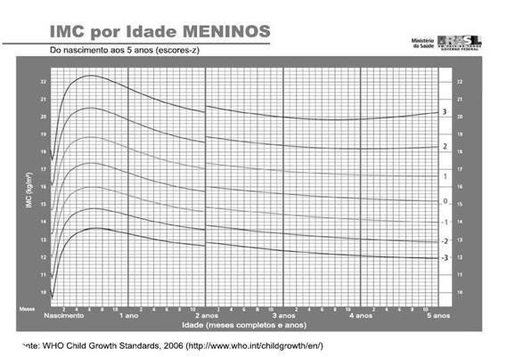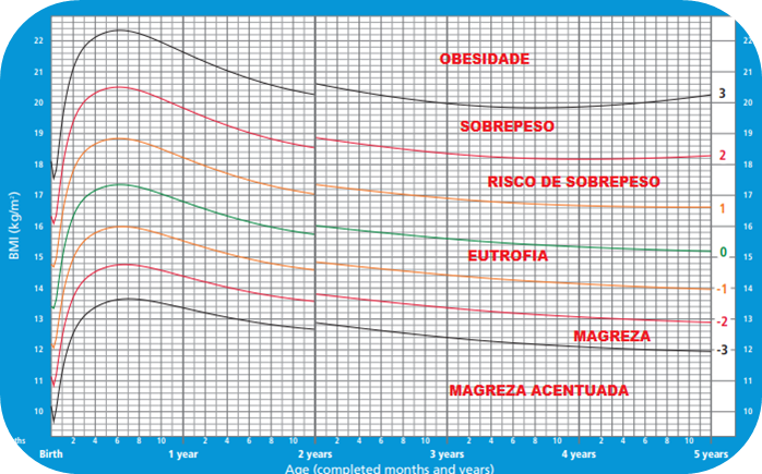 (SUS PE 2018) - O crescimento somático infantil é altamente dependente do uso de curvas de referência. É imprescindível, após a aferição das medidas antropométricas, que o médico plote os valores encontrados em curvas, para que possamos classificar o estado nutricional da criança. Dessa forma, como podemos classificar um menino pré-escolar de 4 anos com peso atual de 21 kg e altura de 105 cm, utilizando a curva de IMC por idade da OMS?