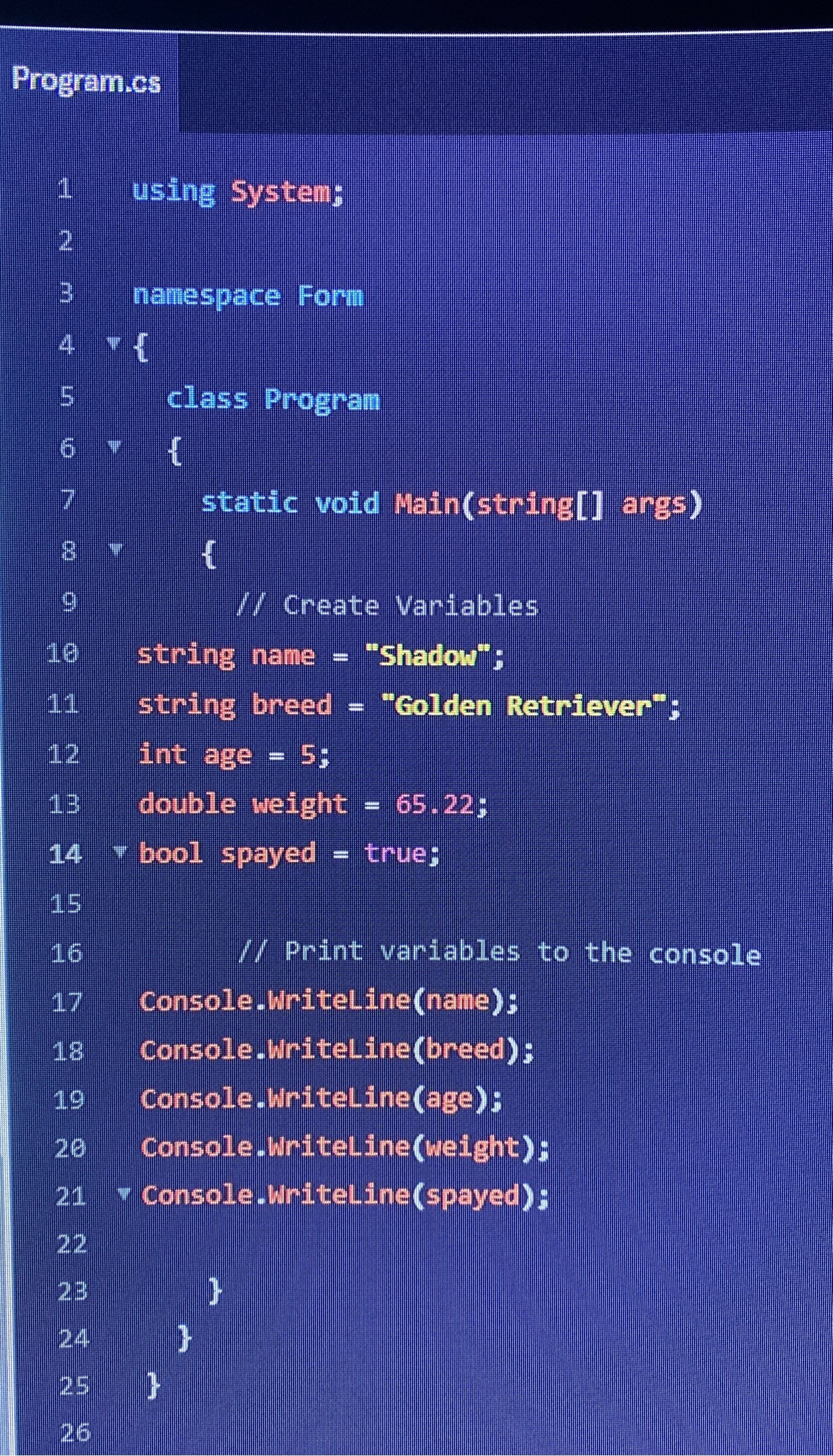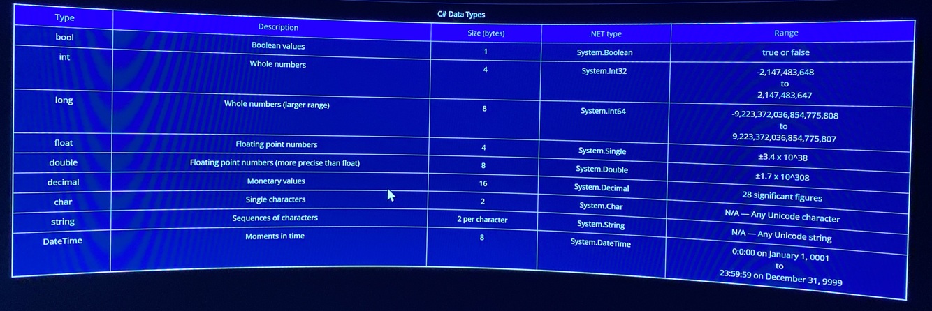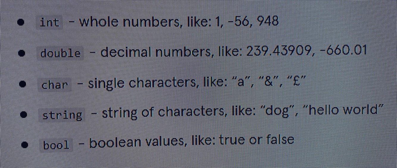 Languages like C-sharp tell a computer about the type of data in its program using data types.