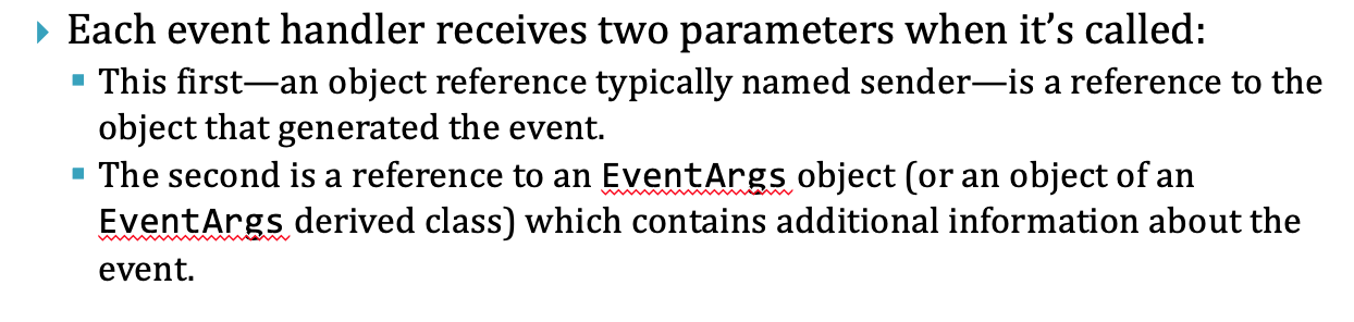 What are the two parameter every event handler receives when its called?