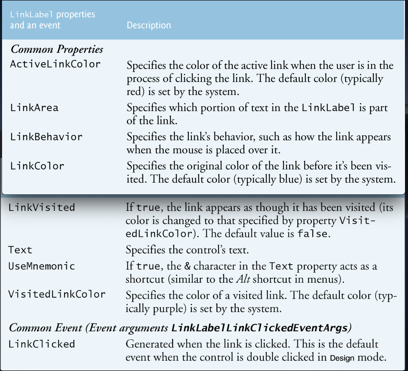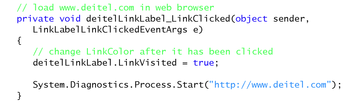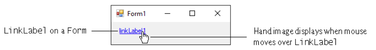 The link label control displays links to other resources, such as files or web pages.