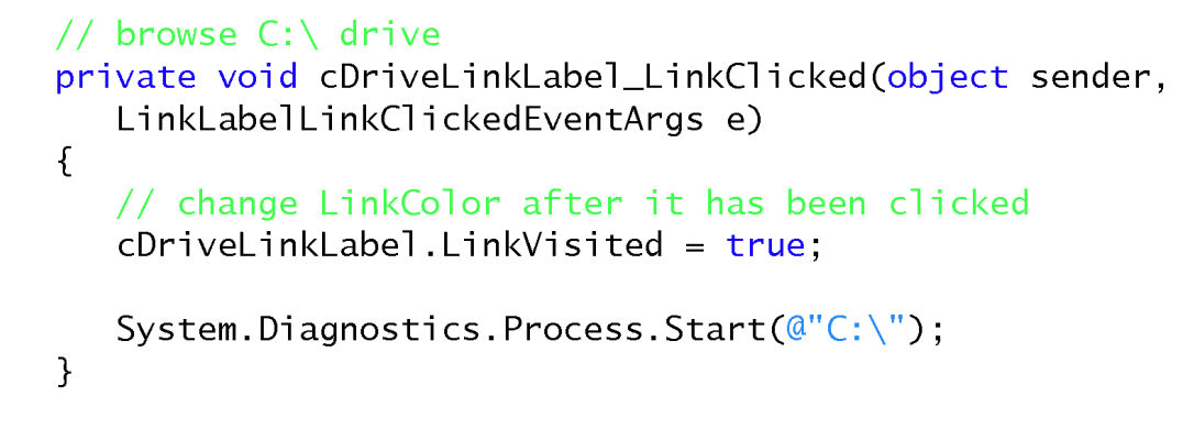 How would you use a link label to browse the C: drive?