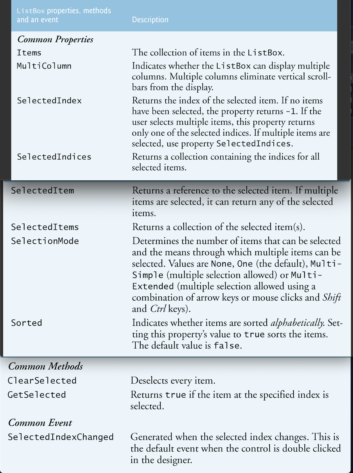 What are the common properties and default even for listboxes?
