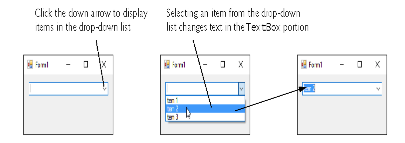 The combobox control combines textbox features with a drop-down list.