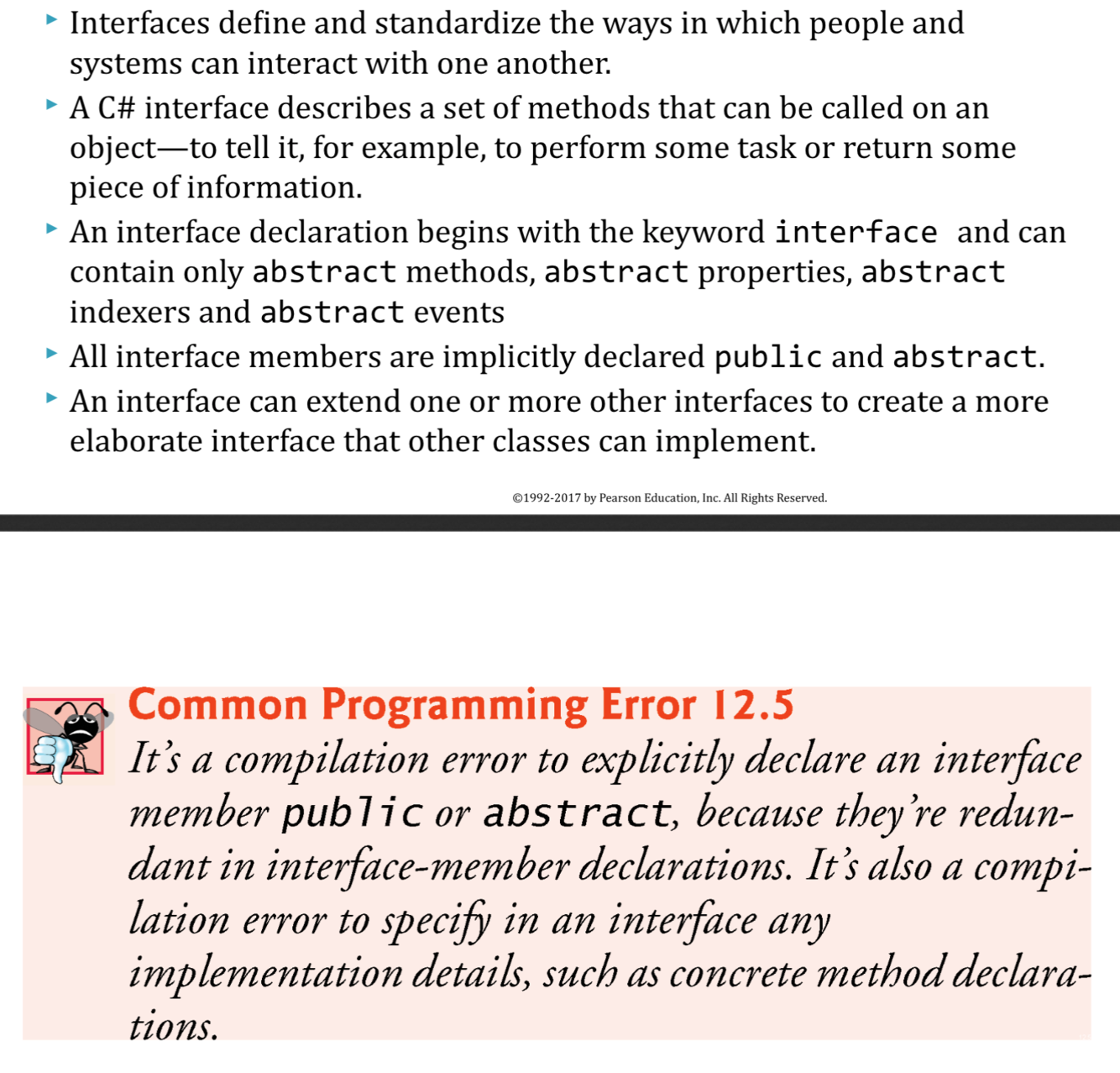 An interface explains adjectives (searchable, edible) and can group unrelate objects. Abstract classes still use the “is a” relationship and are nouns (shape, mammal)