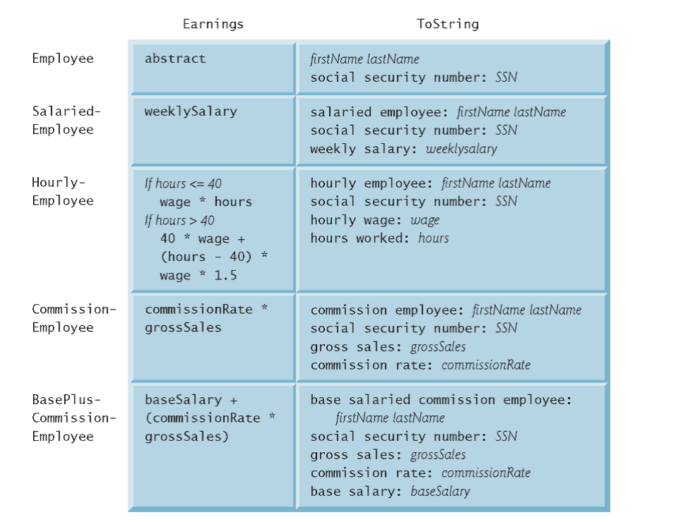 What would the different earnings and to string methods look like in an abstract hierarchy?