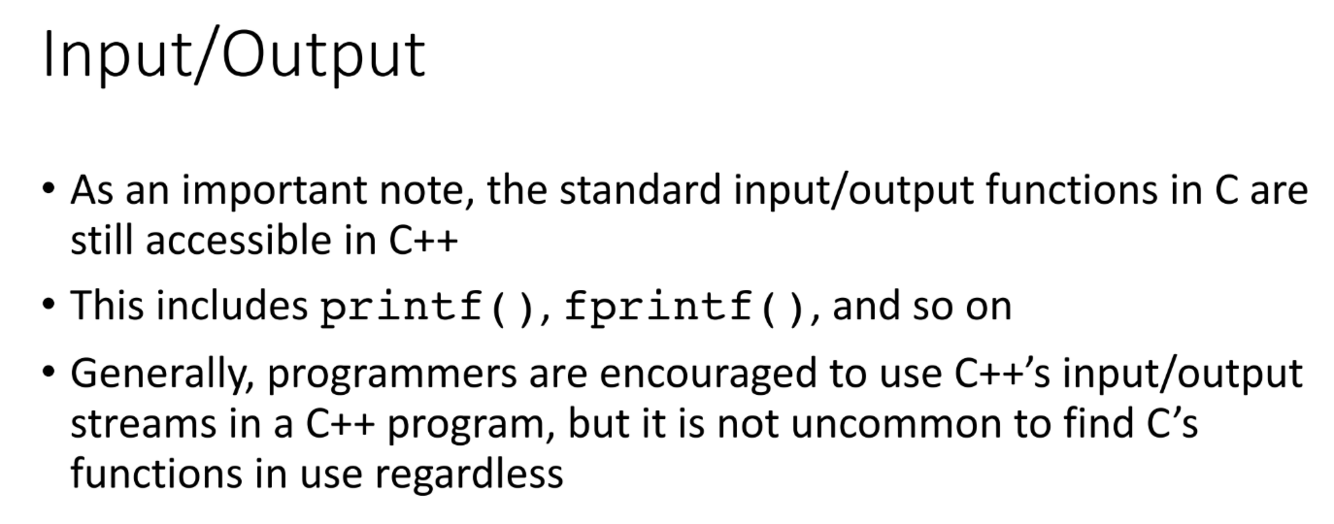 Are the standard inout and output functions from C also available in C++?