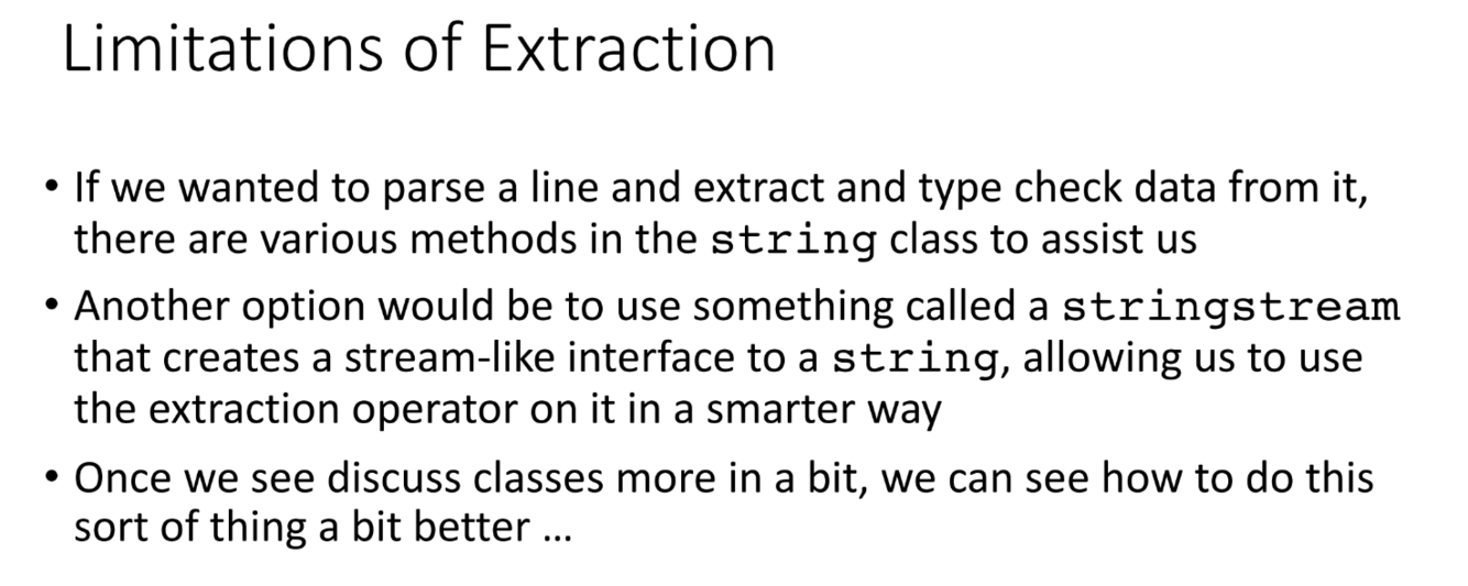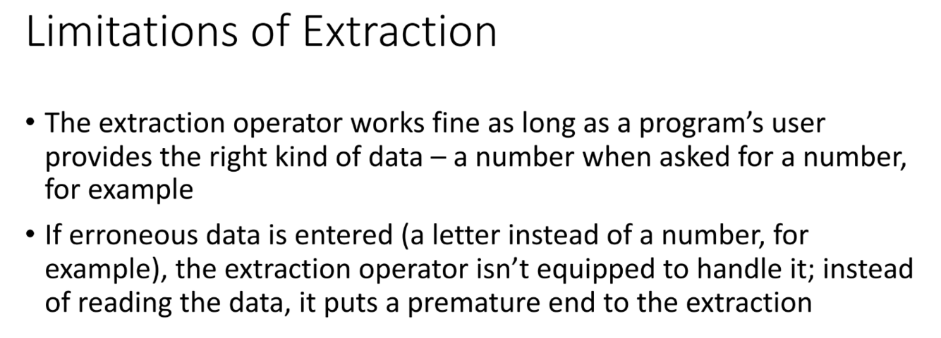 What happens with the extraction operator when erroneous data is passed?