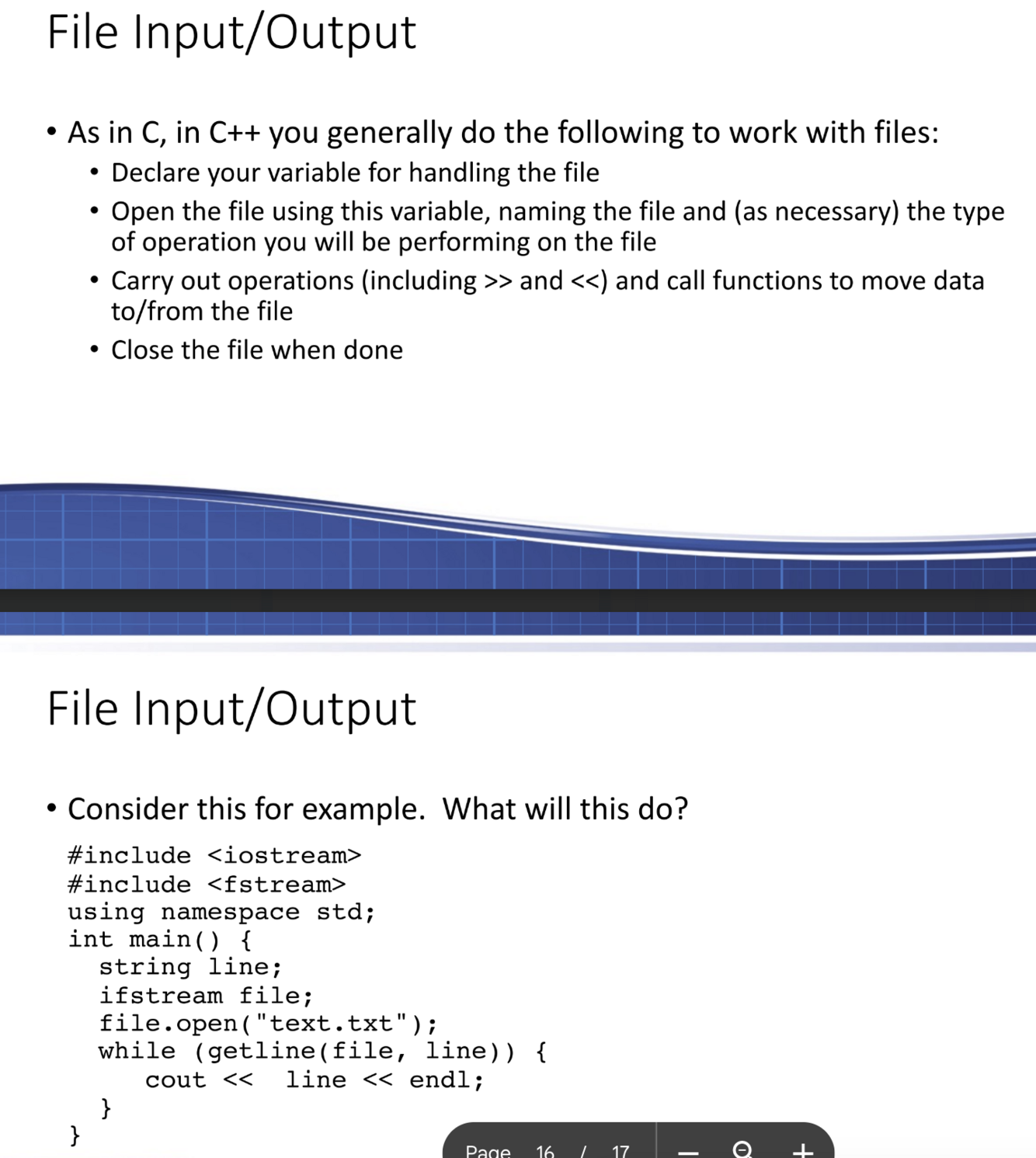 What work is generally done with files in C++?