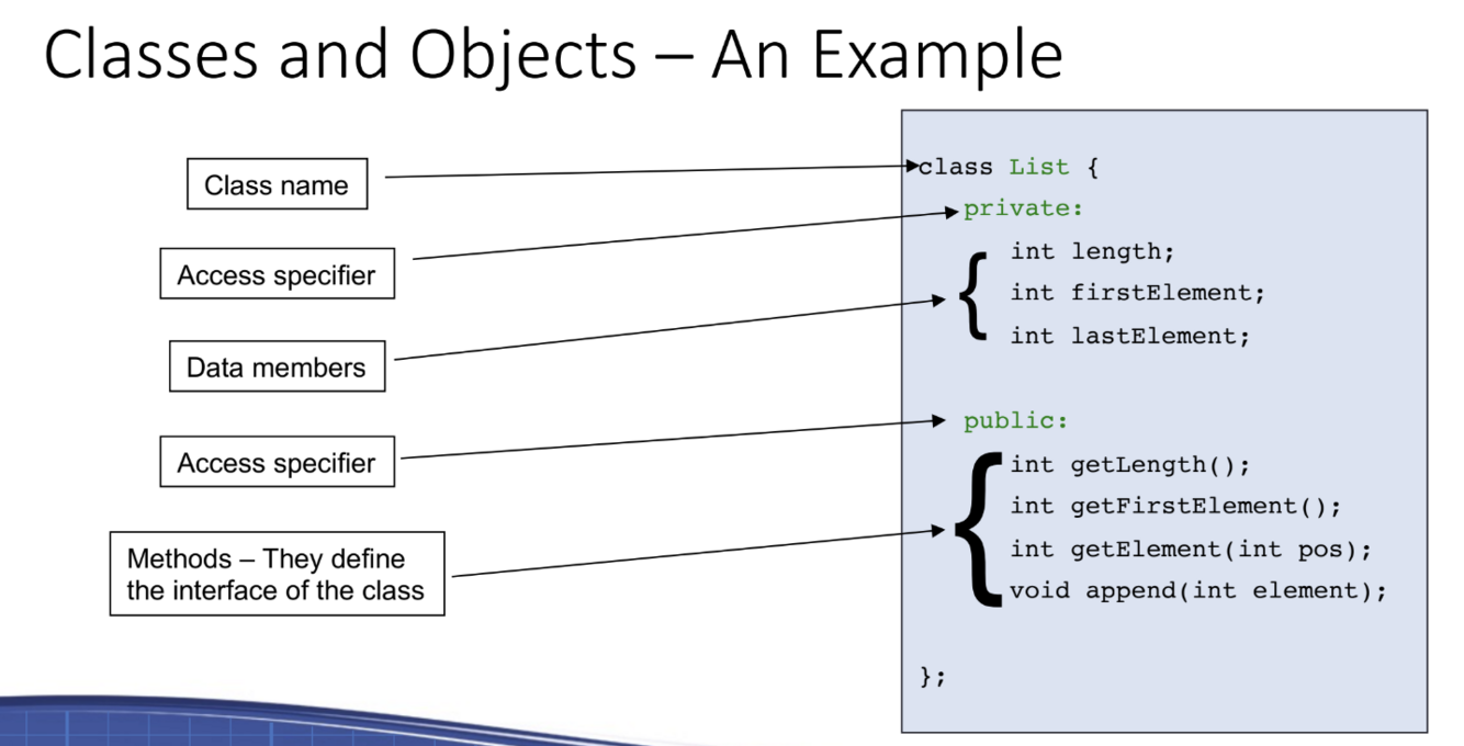 What are the different components of a class definition?