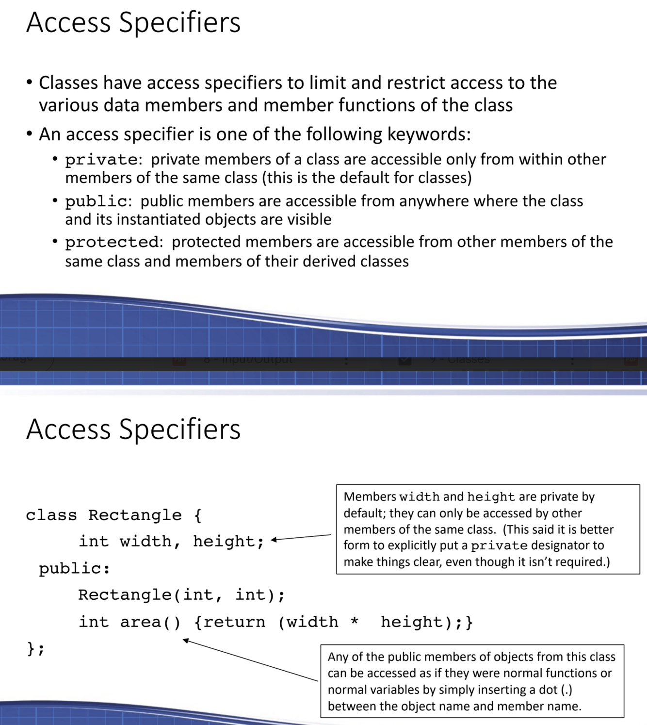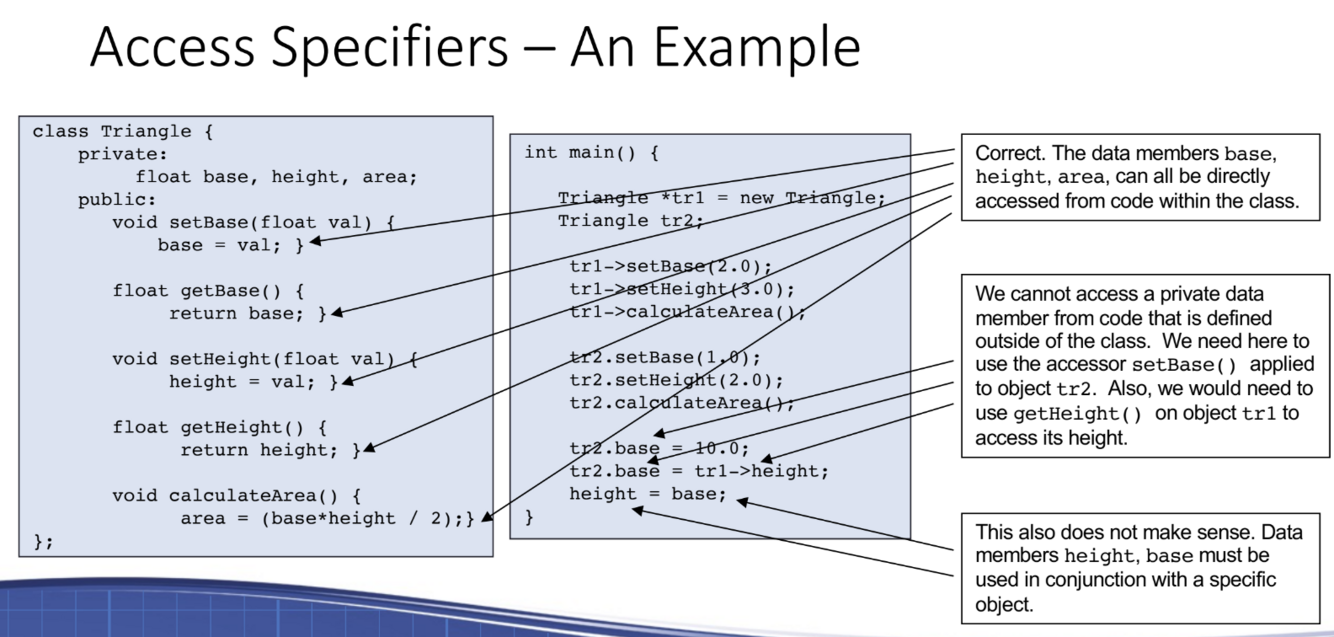 Access specifiers example: