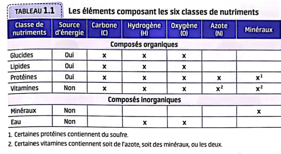 Éléments composants les 6 classes d’aliment