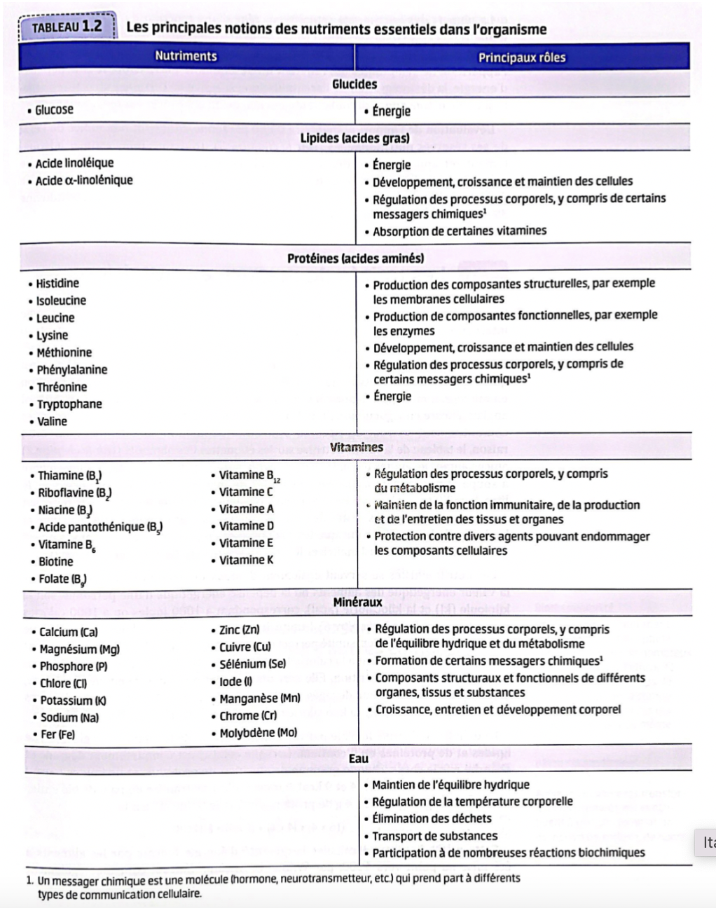 Principales notions des nutriments essentiels dans l’organisme