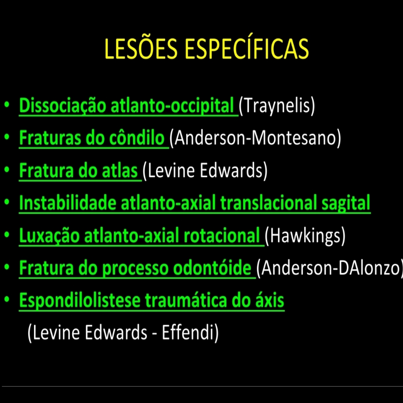 Lesões especificas [7] + nomes de duas classificações