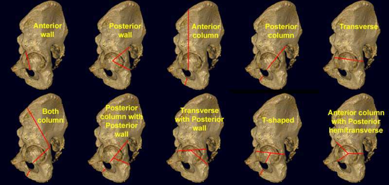 List all 10 types of Periacetabular fractures