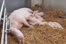 The farmer expects the sow to farrow down any day now.