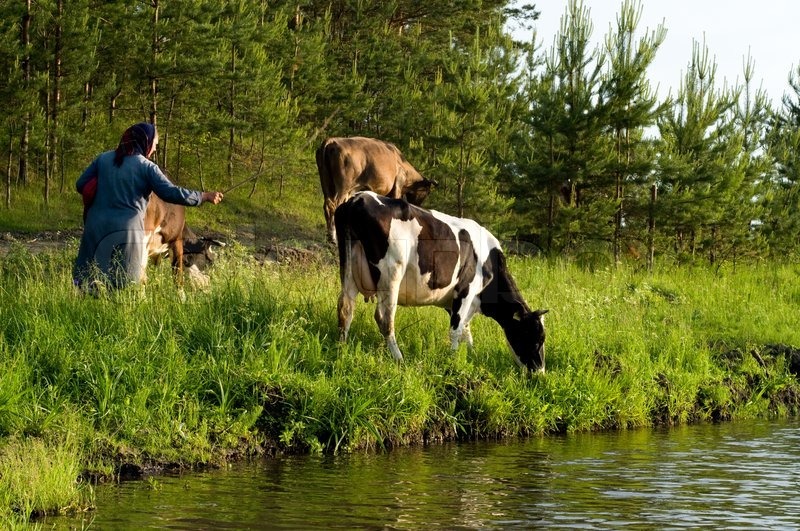 There were cows grazing beside the river.