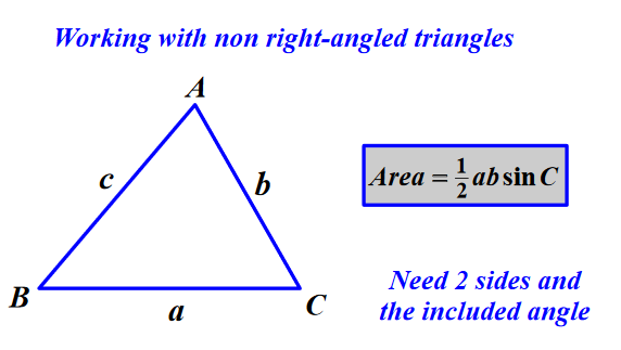 When to use non right angled triangles when have 2 sides and one angle to find a side. Formula is in the book