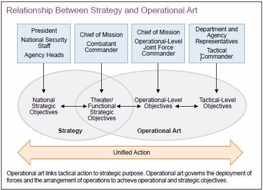 Operational art is the cognitive approach by commanders and staffs to plan and execute strategies, campaigns, and operations to organize and employ military capabilities by integrating ends, ways, and available means.