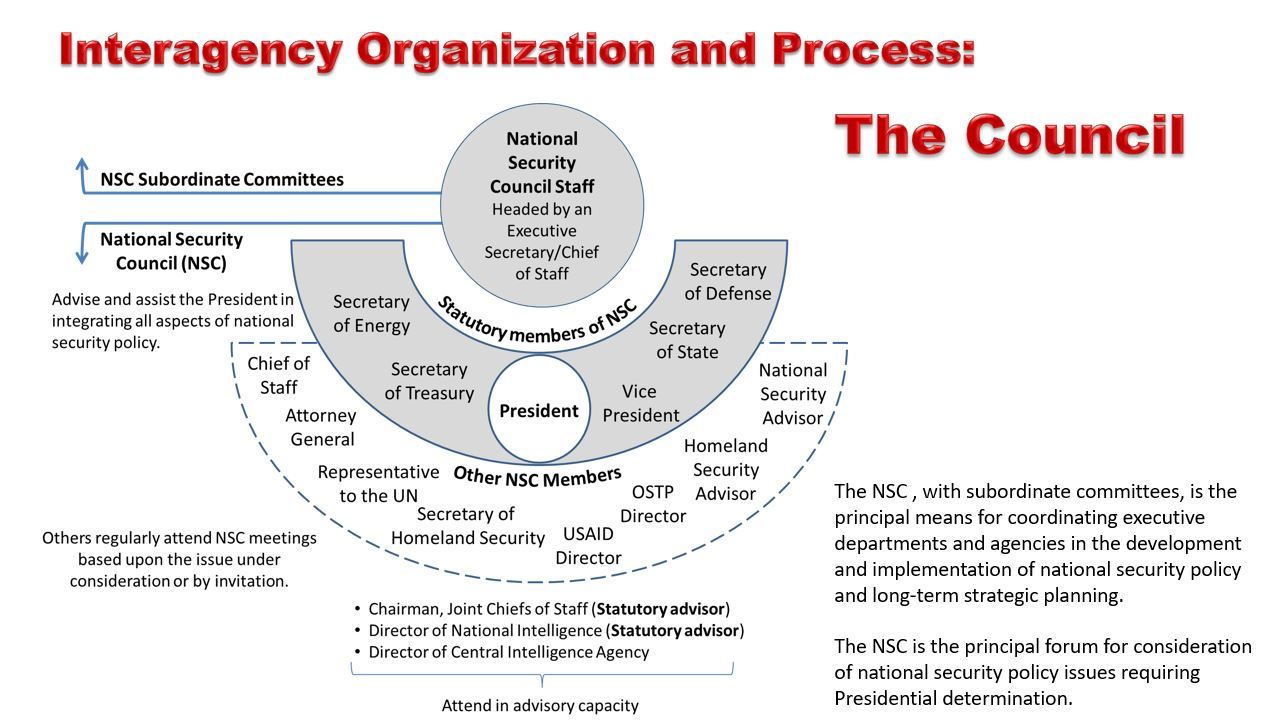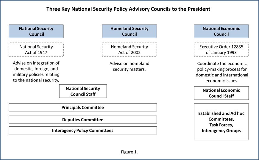 Advise on integration of domestic, foreign, and military policies relating to the national security.