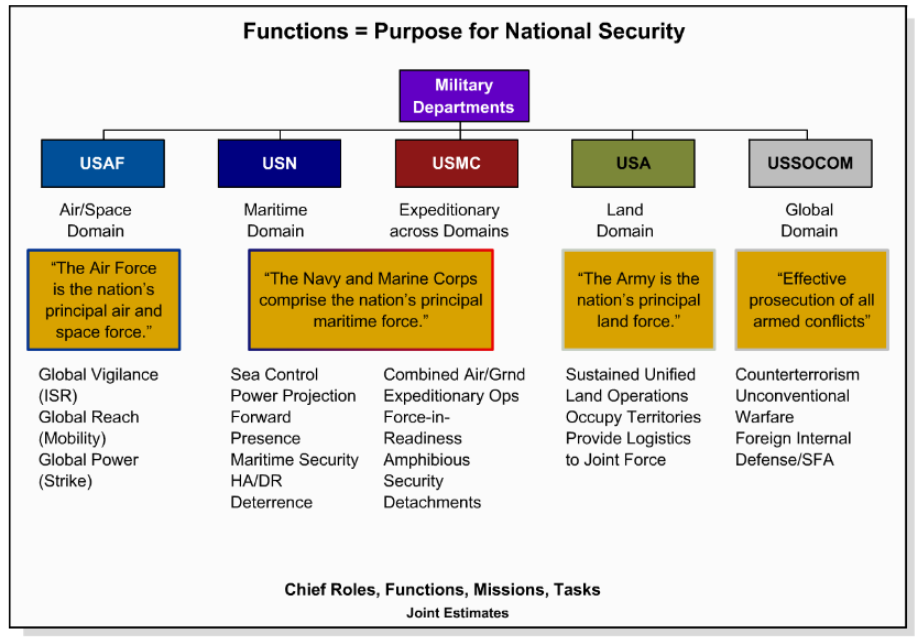 What are the functions/roles of the military departments & services IAW DOD Dirctive 5300.1?