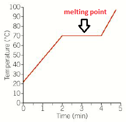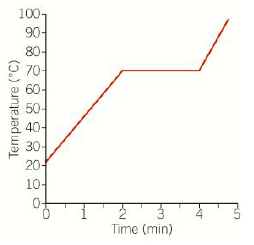 The graph shows the temperature changes of a solid when it is heated into a liquid. At which point in the graph is the solid undergoing a change in state? (melting)