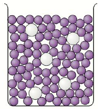 The diagram shows a solute (solid or gas) and solvent (liquid). What would the solution look like?