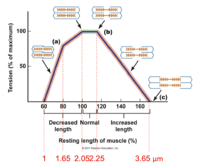 - Longueur optimale = moment où on a une meilleur force possible par rapport au chevauchement actine-myosine