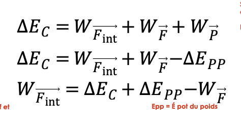 * La variation d’énergie cinématique est égale à la somme des travaux des forces int et ext appliquées au système