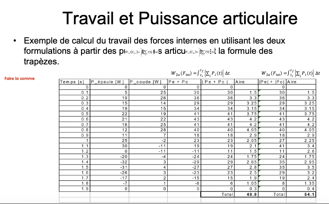 Travail et Puissance articulaire