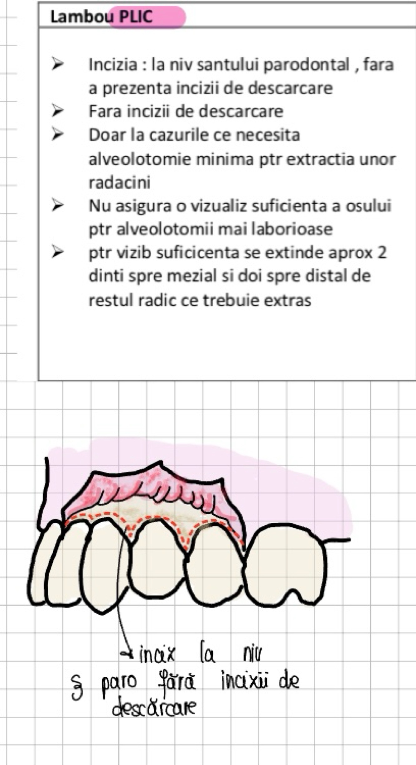 ptr vizibilitate buna a corticalei e necesar un lambou mucoperiostal care cuprinde :