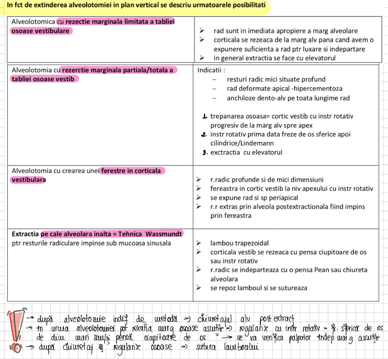 tabel alveolotomie- posibilitati alveolotomie in fct de extinderea in plan vertical
