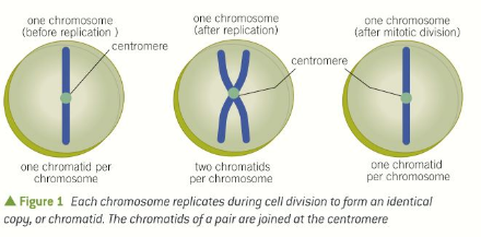 Each chromosome is converted into two identical DNA molecules called chromatids