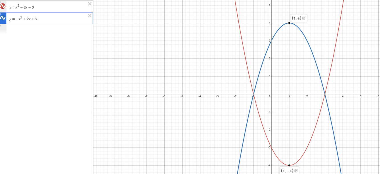 reflections of each other in the y-axis