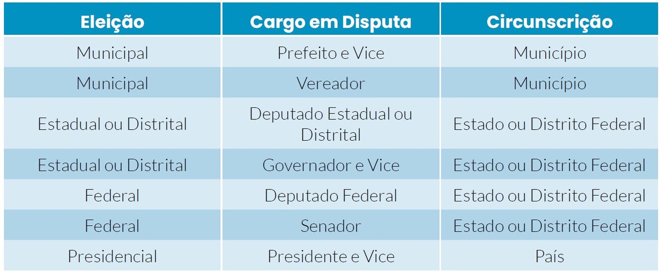 2. As eleições ocorrem de modo alternado (ex: em 2024 terá eleições de âmbito municipal e em 2026 terá eleições de âmbito federal/estadual/distrital); e
