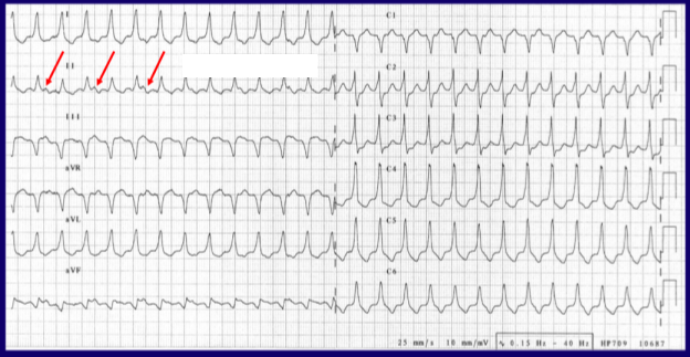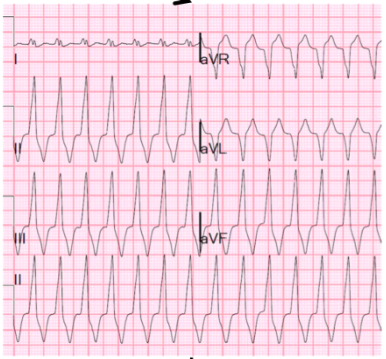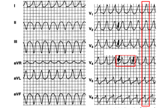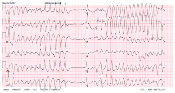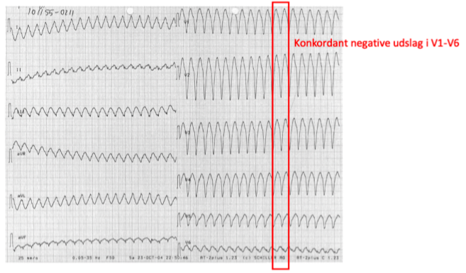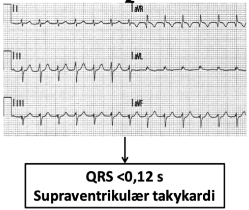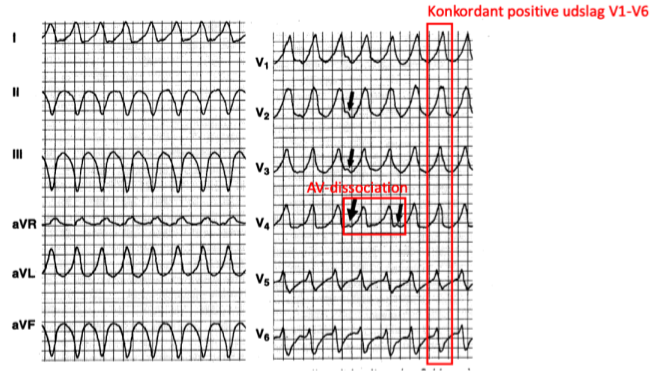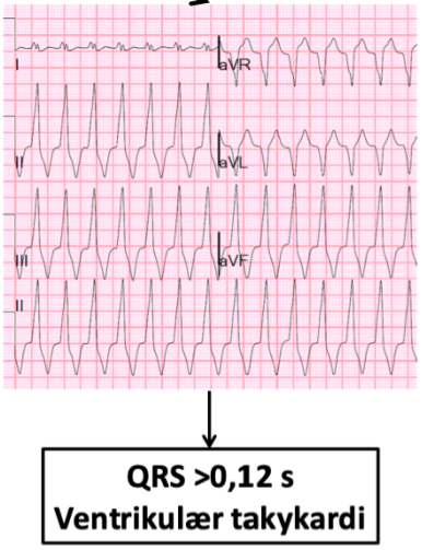 En takykardi med breddeøget QRS kompleks er en ventrikulær takykardi, indtil andet er bevist (80 % af tilfældene)