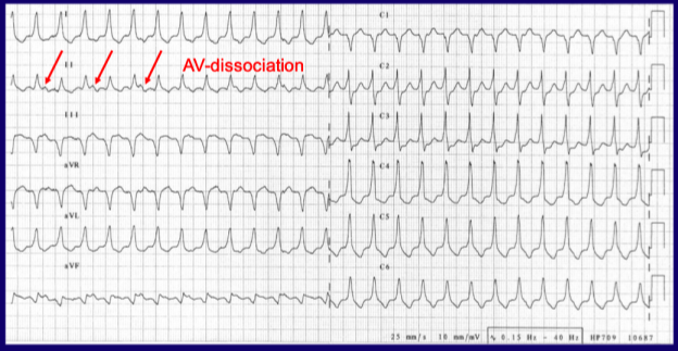 hvordan stilles EKG diagnosen ved monomorf VT?
