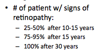 what are the number of patients with signs of retinopathy in DM type 1?