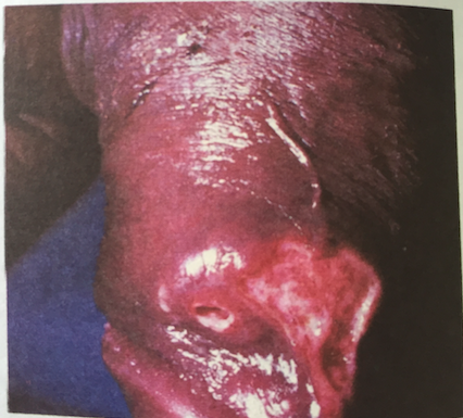 p’eau d’orange when lymphatic system is blocked, skin enlarges and looks like orange peel