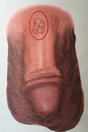 usually on the dorsum of the penis