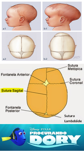 Craniossinostose da sutura sagital → ↑ diâmetro longitudinal