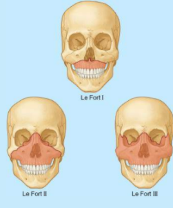 Le Fort III: atravessa as fissuras orbitais superiores
