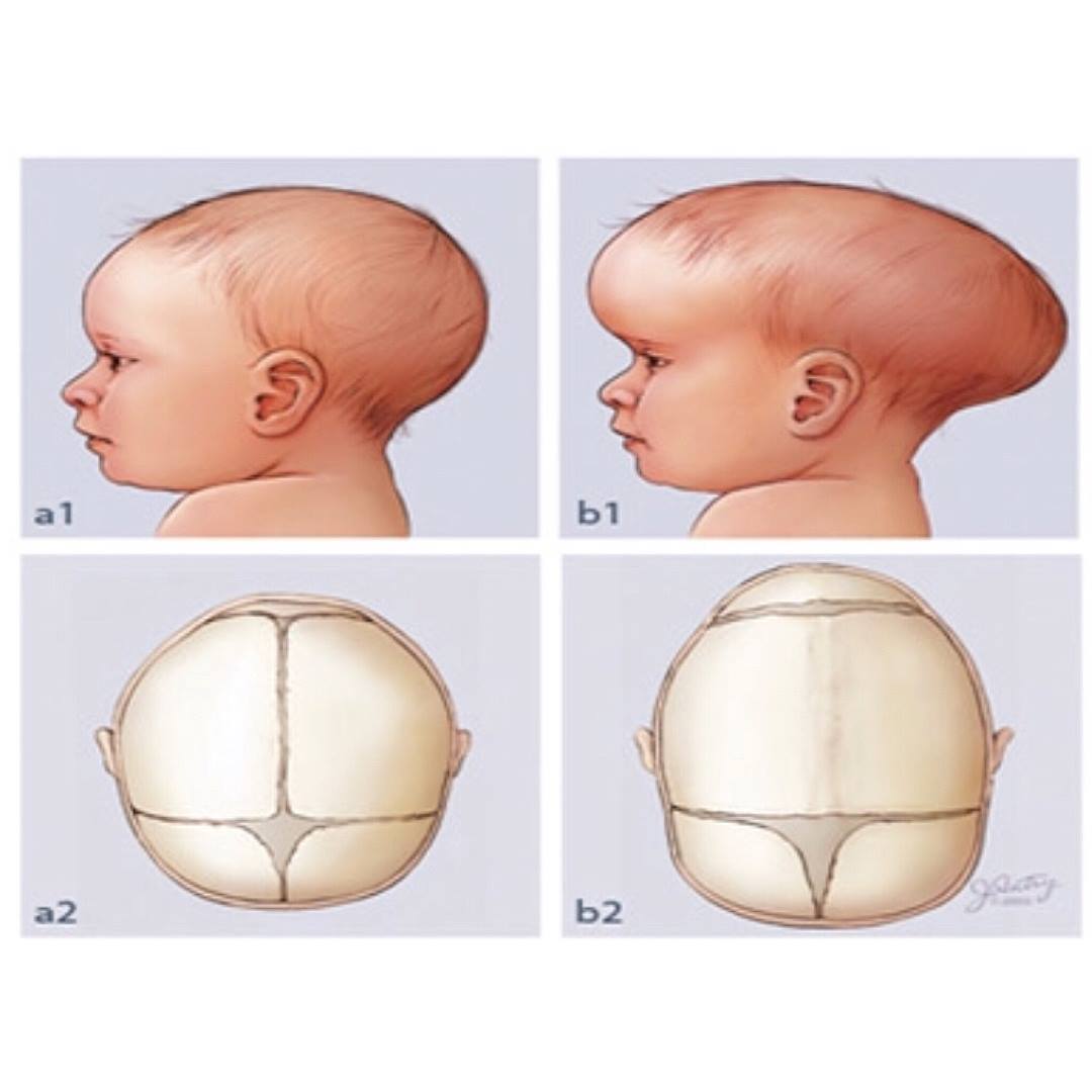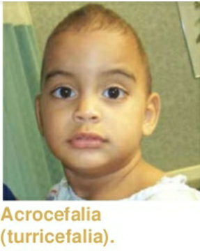 Deformação craniana que resulta em um formato cônico (pontudo) da cabeça.