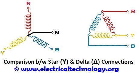 What is the difference between star and delta three phase connections