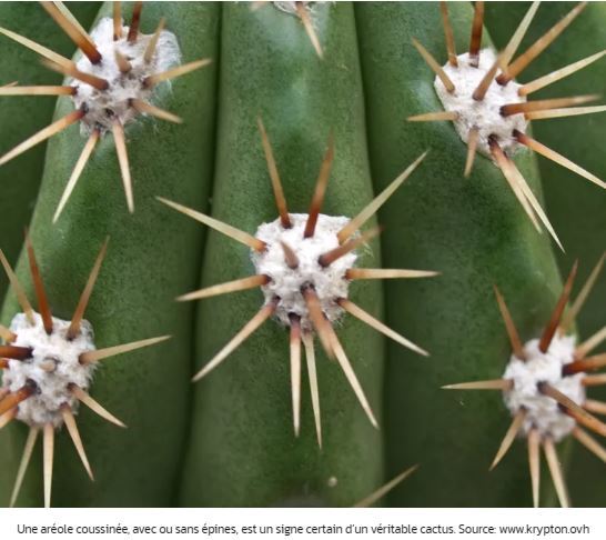 Une aréole coussinée, avec ou sans épines, est un signe certain d’un véritable cactus.
