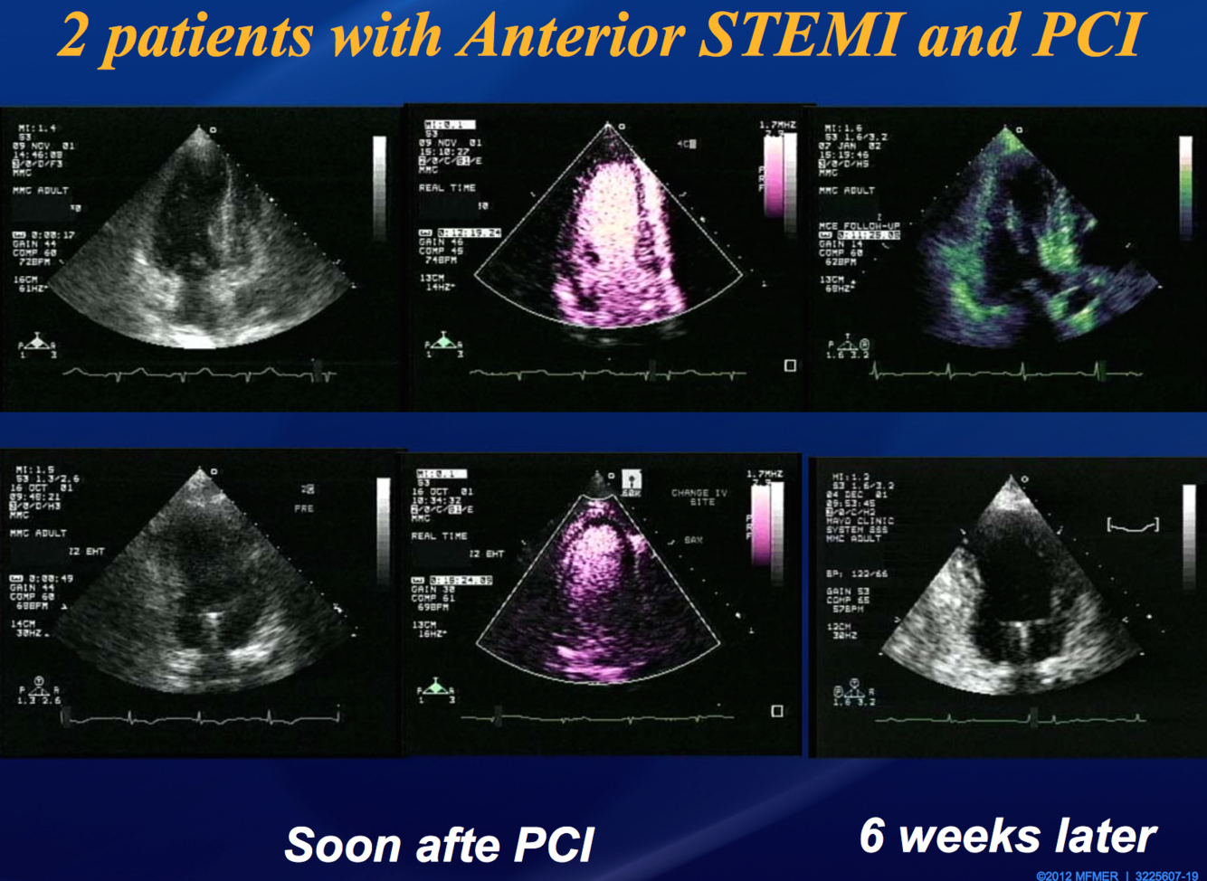 the bottom one is a harbringer of bad outcome because of dark line huggng apex indicating necrosis. in top pic, notice the contrast fills entire apex and the patient does well 6 wks post-PCI