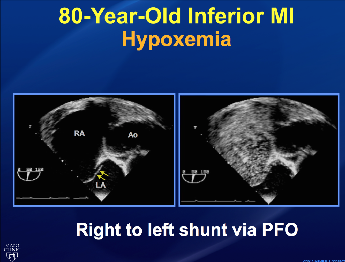 PFO (RV-MI–> Inc RAP–> R to L shunt via PFO)